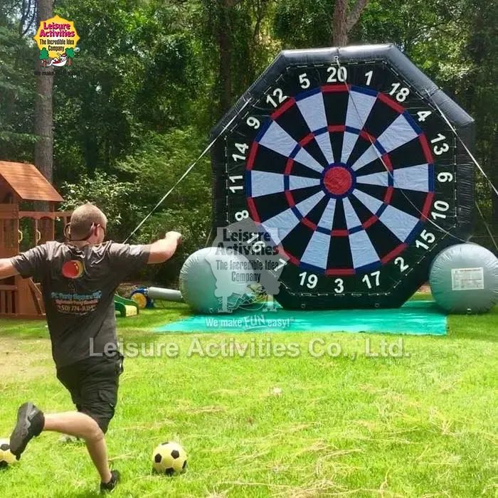 Leisure Activities® yra profesionalus pripučiamų žaidimų gamintojas ir tiekėjas Kinijoje, turintis savo gamyklą. Giant Soccer Dart II Inflatable Sports yra lauko vakarėliams skirta pripučiama sporto įranga, kurioje dera futbolo ir smiginio žaidimai. Jis pagamintas iš aukštos kokybės PVC medžiagos ir pasižymi dvigubo siuvimo technologija. Jis tinka visoms amžiaus grupėms, patogus ir patvarus, turi visą kvalifikaciją ir palaiko pritaikymą, tinka įvairiems veiklos scenarijams. Tai ekonomiškas ir linksmas, ir praktiškas produktas.