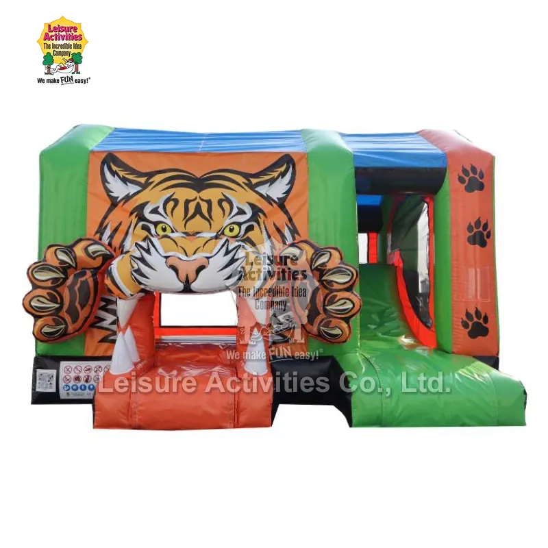 Leisure Activities® yra profesionalus pripučiamų gaminių gamintojas ir tiekėjas Kinijoje. Standartinės pripučiamos kelių žaidimų „Tiger Bouncy Castles“ yra tigro tema pripučiama pilis, kurioje derinamos šokinėjimo, laipiojimo ir slydimo funkcijos. Jo pagrindinės spalvos yra žalios ir oranžinės, o prie įėjimo – 3D tigro puošmena. Jį galima greitai nustatyti vos per 10 minučių.